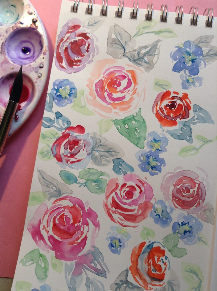Currently, I am taking a class on Surface Pattern Design with hopes to find my watercolor motifs covering everything from fabric to notebooks someday. :)