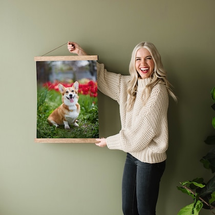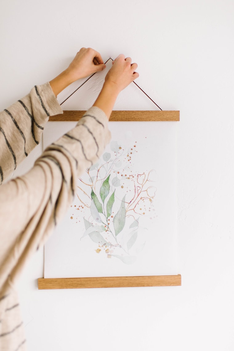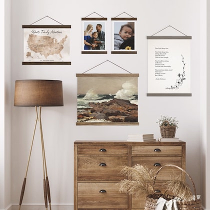 Our magnetic HANGER FRAMES™ are a beautiful, simple, and affordable way to hang art and photos. We wanted to offer lots of different size canvas and frame options, to fit any empty space on your wall. We use real solid oak wood that is a durable hardwood that will last for years to come. You can choose from six different stain colors so that it fits your particular style and color scheme of your home or office. We embed strong rare earth neodymium magnets that can securely hold up a heavy canvas print. We use magnets instead of permanently fixing the canvas to the sticks so that you can change out the artwork whenever you please! Your Hanger Frames delivery will include three string options for you to choose from: faux leather cord, brown jute twine, and white cotton twine.