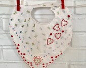 Valentine's Day Handkerchief Baby Bib Hearts and Flowers Hanky Bib for Baby