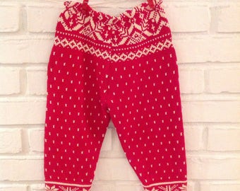 Toddler sweater leggings with red white snowflake motif