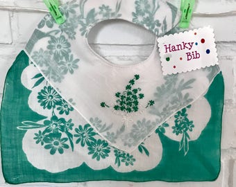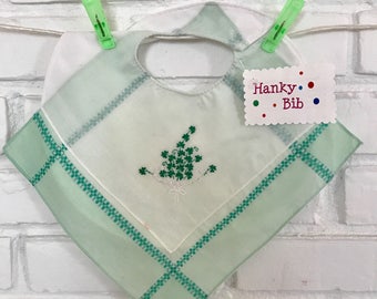 Green baby bib with shamrocks! from Irish handkerchiefs, for your little leprechaun!