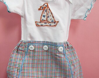 3 pc Baby Shorts Set for your little Sailor! T-shirt with Sailboat Applique