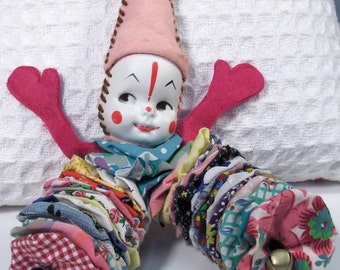 Yo Yo Clown Doll, Jinglin' Jack, colorful vintage fabrics, authentic painted face