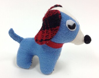 Cute Plush Blue Dog Toy Stuffed Animal Dog Upcycled wool Palm size toy
