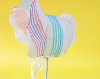 Spring Bonnet for Baby Girl, Easter Bonnet, Vintage-inspired, Pastel Striped Organza with lace, Sun cap for baby girl,