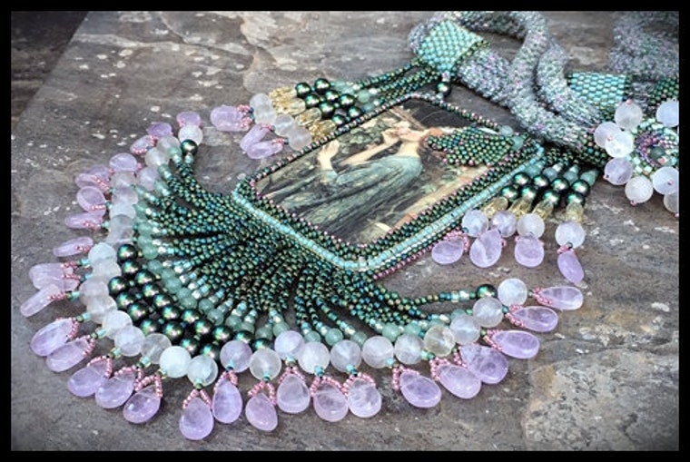 I was a semifinalist in the lampwork category for Bead Dreams 2009 and won second place for my bead embroidered collarpiece in the Treasures of Toho 2009 Contest. The Treasures of Toho necklace can be seen in the February 2010 issue of Bead & Button. In 2010 Marsha Hines showed a collaborative piece in the ISGB show. In 2011 my Neptune's Tail Necklace won third place in the Bead and Jewelry category at the Vegas Glass Craft Expo. In 2012, my beaded sculpture won first place in the advanced division at the Treasures of Toho Contest. Since then, I have placed a second time in Bead & mButton's Bead Dreams and taken part in many Toho Beads Challenges.