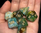5 out of 5 starsThese dice are super beautiful <33 !! Similar to as shown in the image with slight differences that make it unique. Only a little disappointed as mine are more white than I expected, but otherwise they’re perfect ! Seller even threw in a cute blue sparkly D6 :))