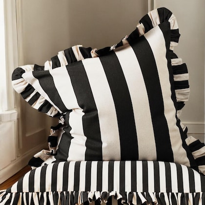 Our indoor pillow photos use a 18x18" cover with our 20" down insert. Our outdoor pillow photos use a 18x18" cover with our 20" polyester insert. We recommend flipping your current covers inside out and measuring seam to seam if using your own insert. To replicate the "chopped" look, we strongly suggest using down pillow inserts, as not all down alternative or polyester inserts are able to "hold the chop". Unfortunately, we cannot guarantee fit if you chose to use another brand of insert. Actual items may vary from image shown as pattern placement may vary due to size and other factors.