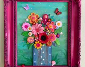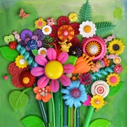 Finally, an idea emerged to do a portrait of her son using all the broken toys. It proved to be an addictive mix of painting and puzzle solving. The toys and materials pull you into a story within the artwork. Every piece she’s completed has been a lesson is how to paint with objects.