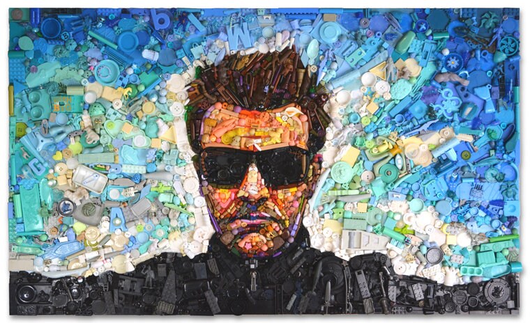 Schließlich entstand die Idee, aus all den kaputten Spielsachen ein Porträt ihres Sohnes anzufertigen. Es erwies sich als eine süchtig machende Mischung aus Malen und Rätsellösen. Die Spielzeuge und Materialien entführen Sie in eine Geschichte innerhalb des Kunstwerks. Jedes Stück, das sie fertiggestellt hat, war eine Lektion darüber, wie man mit Objekten malt.