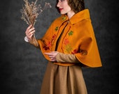 5 out of 5 starsThis is a truly unique and beautiful capelet that I will wear with pleasure. The craftsmanship is of highest quality with extraordinarily detailed autumn leaf embroidery. The materials are exceptional with vibrant colors and fine detailing. This is not merely an outfit- it is truly a fine investment to last your lifetime with proper care.