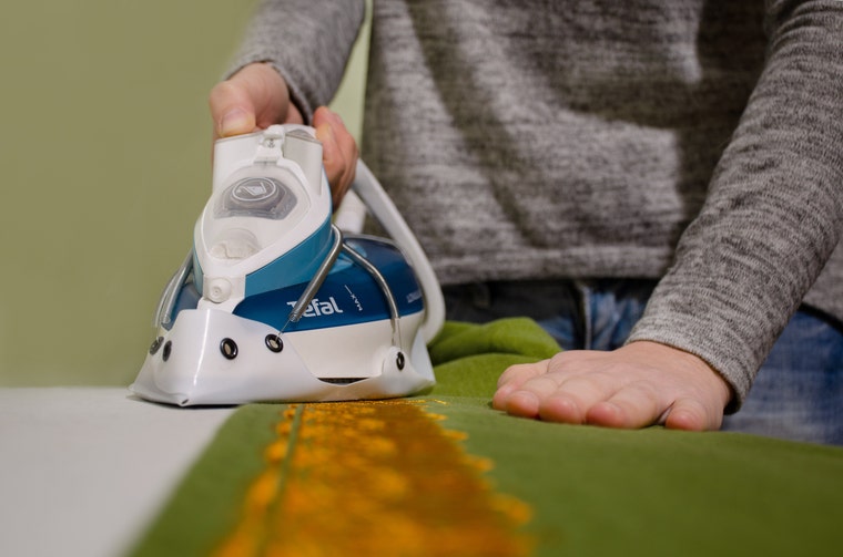 Use a medium- to high-heat setting on the iron and press only until the wrinkles are removed — you don't need to iron until the fabric is completely dry, as it will dry quickly all on its own.