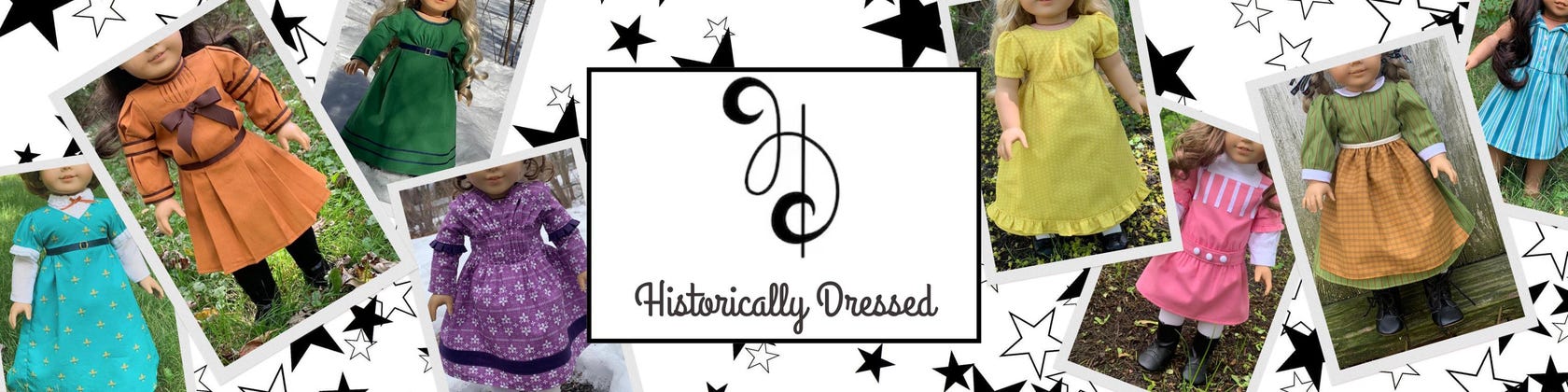For sneak peeks of upcoming designs and behind-the-scenes, as well as new/restock announcements and the occasional poll for voting on what I should make next, please follow me on Instagram (@historicallydressed).