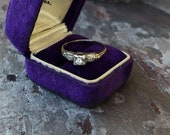 5 out of 5 starsGorgeous ring! Didn’t have three diamonds as described, has only one..but I saw that in the photos and bought anyway. I do not believe in any way that this was intentional on the part of the seller. Ring did not disappoint! It is a stunner! The ring box was beautiful, and came with a little hinge, and a personal note from the seller! Beautiful, sparkly ring in excellent condition. I highly recommend, and will be buying from again!