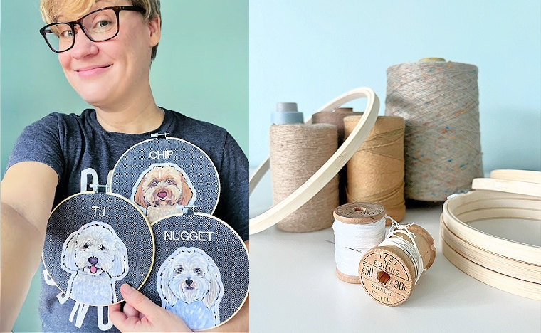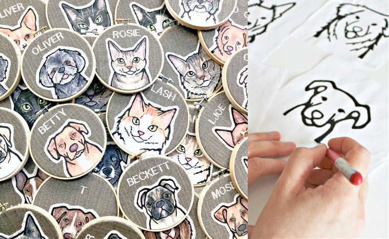 Thread and Paw is a fun mix of all the materials I loved working with at the Tyler School of Art where I received my Bachelor of Fine Arts degree. I got the idea for Thread and Paw when I was teaching elementary art and was asked by a co-teacher to make a portrait of their pet. I gathered up my inks, fabric crayons, and embroidery needles to make a quirky custom portrait! From listening to customer feedback over the years, we've grown to offer personalized embroidered pet toys, custom patches and more!