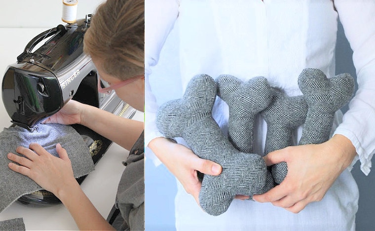 Hello there - I'm Carolyn from Thread and Paw! I design and stitch tweed toys for cats and dogs and work with pet parents to handcraft custom pet portraits. I'm constantly inspired by the love of my own pups (Roxie + Minnie) to create special, one-of-a-kind pet goods for people and their furry friends.