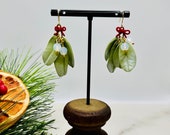 5 out of 5 starsThese mistletoe earrings are absolutely gorgeous! I fell in love with them on the seller’s instagram post and she was kind enough to list a pair for me here. I grabbed them right away and I’m so happy I did! The green leaves and tiny red bow go with all of my holiday outfits and the slight sparkle of the beads draws attention. The clay means they are very lightweight as well. I plan to wear them to every holiday activity I have this season, especially on Christmas Eve. They shipped quickly and the seller was very friendly and nice to work with. Highly recommend!