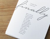 5 out of 5 starsHonestWedding says exactly what I want to say without me rambling. This card is perfect for modern love and the rational couple who know how to go through the world together and yet still maintain their sense of self. Well done!