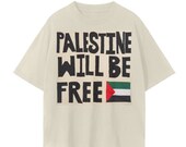 5 out of 5 starsIncredible tee with a MOST IMPORTANT MESSAGE ! So happy to have found this tee and this seller and to be able to support Palestinians with this purchase. Happily wearing it around town in NYC ! (also super comfy and great fit) Thank you thank you !