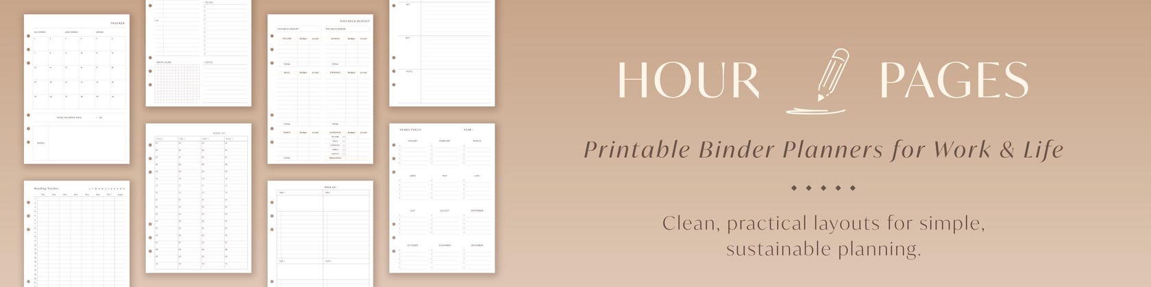 Hour & Pages was created for busy women who want to manage both work and life in a more organized and practical way. I design minimal printable planners with clean structure, practical layouts, and a stylish feel to support efficient planning. These planners are not simply designed to look good on the page. They are created to help you manage both planned tasks and everyday life in a more realistic and structured way.