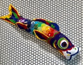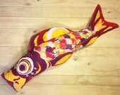 Huggable Koi art plushes look like toys, but they are art items that will not hold up with rough playtime or contact with liquid, food or dirty surfaces. The materials used (almost completely cotton) are flammable, unlike childrens toys.