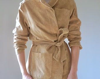 Vintage 90s Suede Jacket/ Dead stock/ 70s style/ Leather/ Soft/ Tan/ Real/ Modern/ Large/ Blazer/ Coat/ Boho
