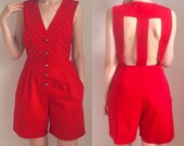 Vintage 1950s ALFRED SHAHEEN Romper/ Hawaiian/ Swimsuit/ 50s Playsuit/ Bombshell/ Pinup/ Tiki/ Honolulu/ Cotton/ Small/ Novelty