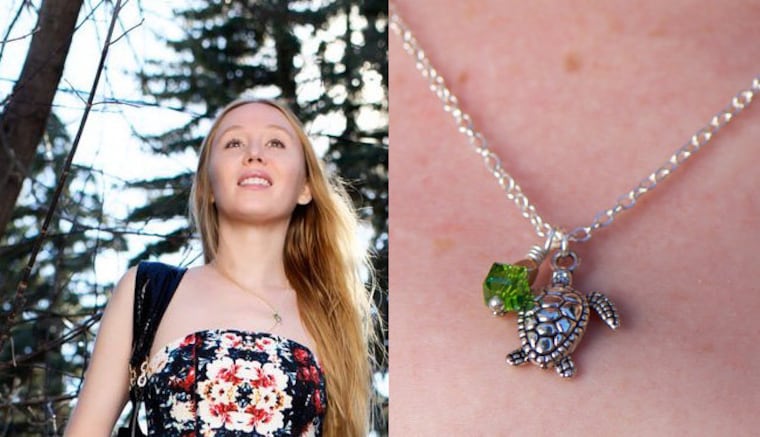 Jacqueline of www.fashionsnag.com is wearing my adorable silver turtle necklace.