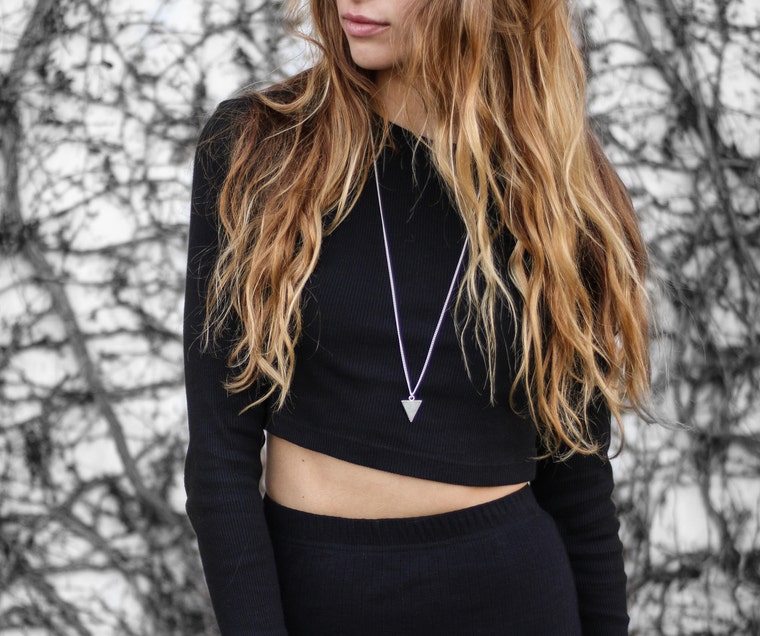 KIM ROSE wearing her Silver Triangle Necklace. https://www.instagram.com/kimmie_roseart -