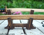 4 out of 5 starsThese are some very nicely crafted pieces of wood. Unfortunately, they sit so close to the wall that they're not good for holding blades with anything much wider than a standard cross guard, and if your sword is actually well balanced, it's going to sit entirely on one hook and not at all on the other, which makes for a precarious display. Ultimately, this didn't end up working for either of the blades I purchased it for, but I can definitely think of a few non-blade things I can put on them, so they're still gonna get use.