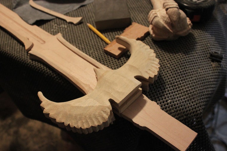 A custom wooden sword in progress.