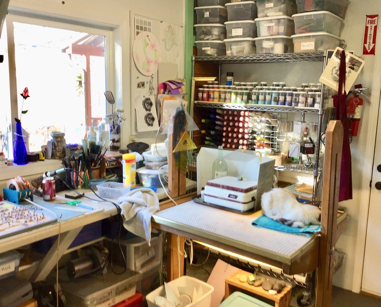 This is the workspace where the magic happens; creating new patterns and choosing just the right glass. -
