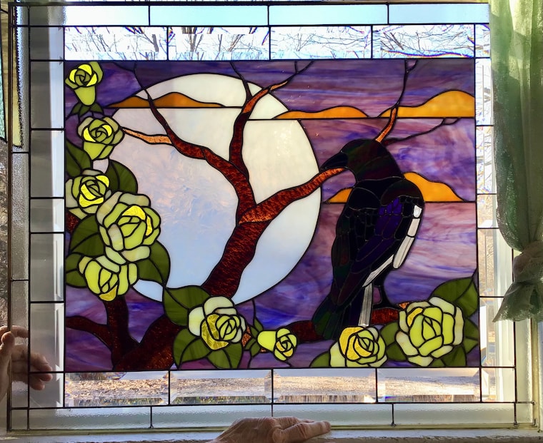 Custom Crow and Roses measures 30x25 and will be framed in its own window. I loved creating this customers vision.