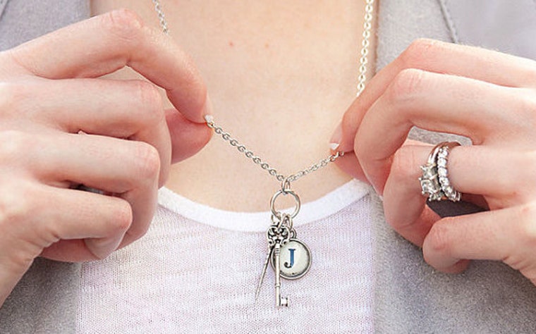 My typewriter key initial necklace Signet with its organic and vintage motifs (photo credit: Jeans and a Teacup blog) -