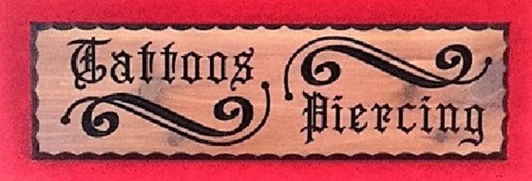 Custom Crafted Cedar Wood Signs. this particular sign was made for a customer for their tattoo and piercing business. -