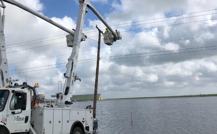I originally started this lineman-focused Etsy shop to fund hot meals for crews working long, punishing hours after major storms—hurricanes, snow and ice events, tornadoes, and other outages. Hotels were often full or closed, which meant many linemen and women, tree trimmers, and cleanup crews slept in their trucks with little or no access to hot food. As a proud linewife who spent weeks—and sometimes months—holding down the fort while my husband (a two-time Iraq combat veteran and journeyman lineman) helped restore power for families like ours, I wanted a way to help him, his crew, and countless others. Designing unique, bold shirts became that way—sales helped me hire food vendors and catering companies to deliver hot meals directly to the field.
