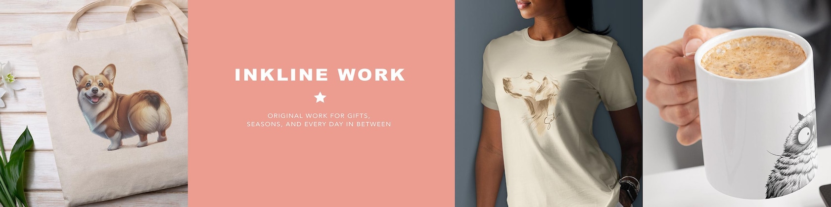 Hey there! We're two professional designers and the creative minds behind Inkline Work. Every design you see is original, handmade by us, and printed in the US. Thanks for stopping by and checking out our work. We hope it brings you joy!