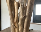 trés jolie lampe en bois flotté, du plus bel effet sur mon bahut.