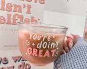 5 von 5 SternenBeautiful! Perfect for my iced coffee. I was searching for glass cup and came across this one with such a cute mantra.