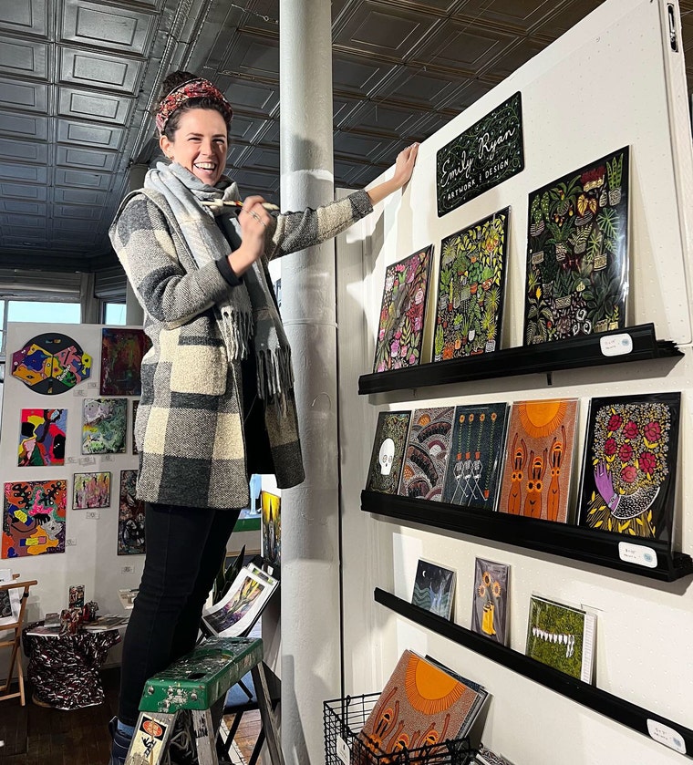 Working on a display of my prints at a gallery. It's cool to see them all together like this!