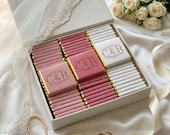 Momente in bleibende Erinnerungen verwandeln Ob Sie eine intime Feier oder eine große Hochzeit planen, es ist uns eine Ehre, Teil Ihrer bedeutungsvollsten Momente zu sein. Bei Ivory & Cocoa stellen wir nicht nur Gastgeschenke her; wir verwandeln kleine, liebevolle Details in Erinnerungen, die ein Leben lang halten.