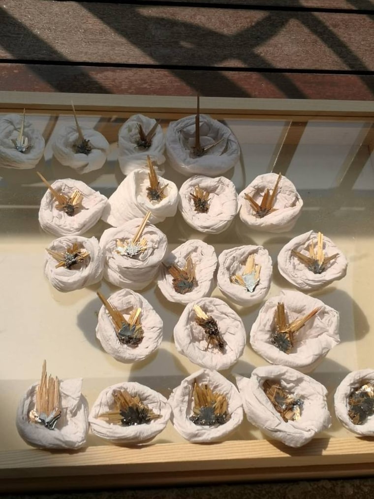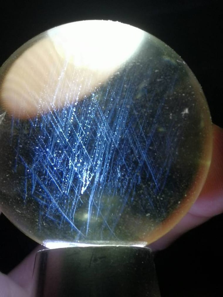 Checking stock on rutile specimen from Brazil bahia -