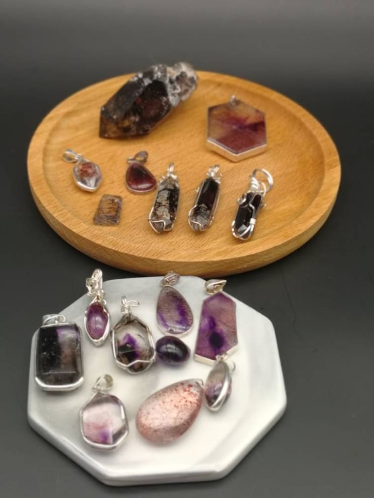 Some of the super seven crystal pendant collection. -