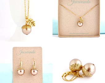 Mothers Jewelry - Acorn necklace - Sterling Silver - Acorn Jewelry Gift Set - Woodland Jewelry - Acorn Jewelry Set - Pearl Acorn Jewelry