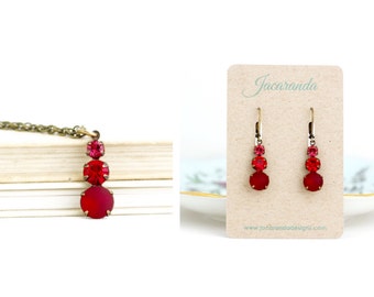 Gift For Women - Jewelry Gift Set - Red Jewelry - Holiday Gift Idea - Vintage Jewel Earrings - - Holiday Gift - Gift For Her