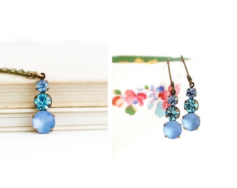 Gift For Women - Blue Jewelry Gift Set - Holiday Gift Idea - Vintage Jewel Earrings - - Holiday Gift - Gift For Her