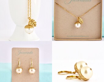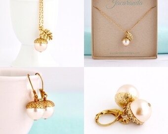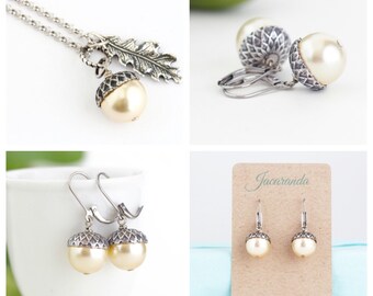 Mothers Jewelry - Acorn necklace - Sterling Silver - Acorn Jewelry Gift Set - Woodland Jewelry - Acorn Jewelry Set - Pearl Acorn Jewelry
