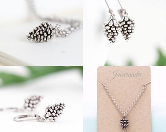 Pine Cone Jewelry Gift Set, Woodland Jewelry, Silver Pine Cone Necklace, Holiday Gift Set For Woman, Necklace Earrings Set, Gift For Friend