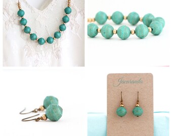 Turquoise Jewelry - Bohemian Jewelry - Strand Necklace - Beaded Earrings - For Woman - Boho Jewelry - Boho Gift Set - Vintage Beads