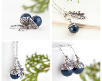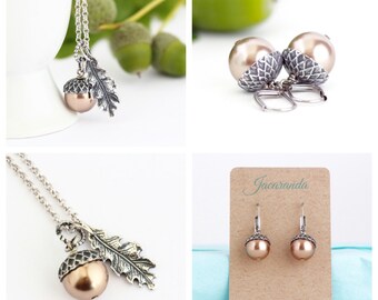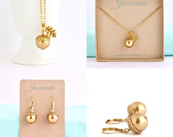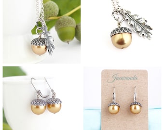 Woodland Jewelry - Gift Set - Acorn jewelry - Nature Jewelry - Thanksgiving - Acorn Necklace - Acorn Earrings - Woodland Wedding